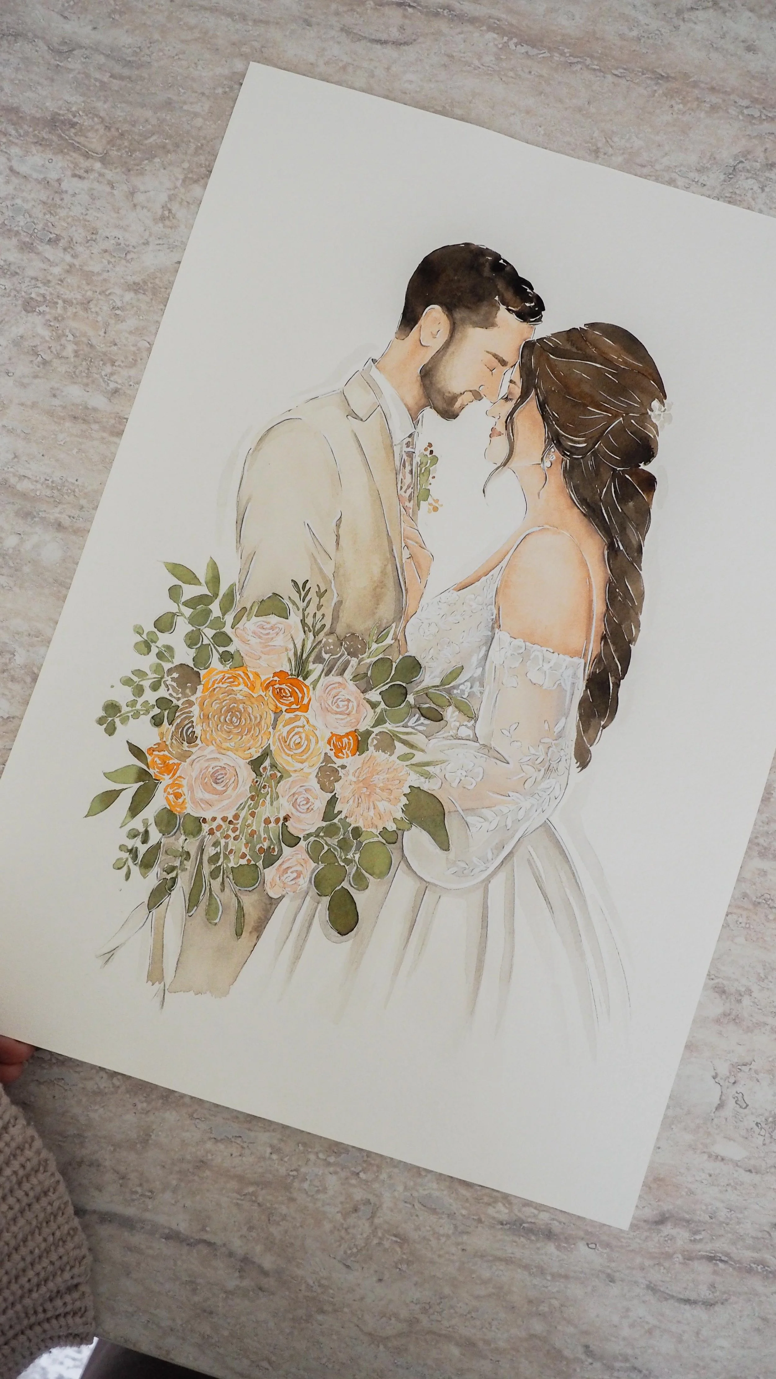 With over 1,000+ couples painted worldwide, Adrienne’s work is a favourite for those looking for a unique wedding or anniversary gift. A truly unique keepsake that tells the story of their wedding day.