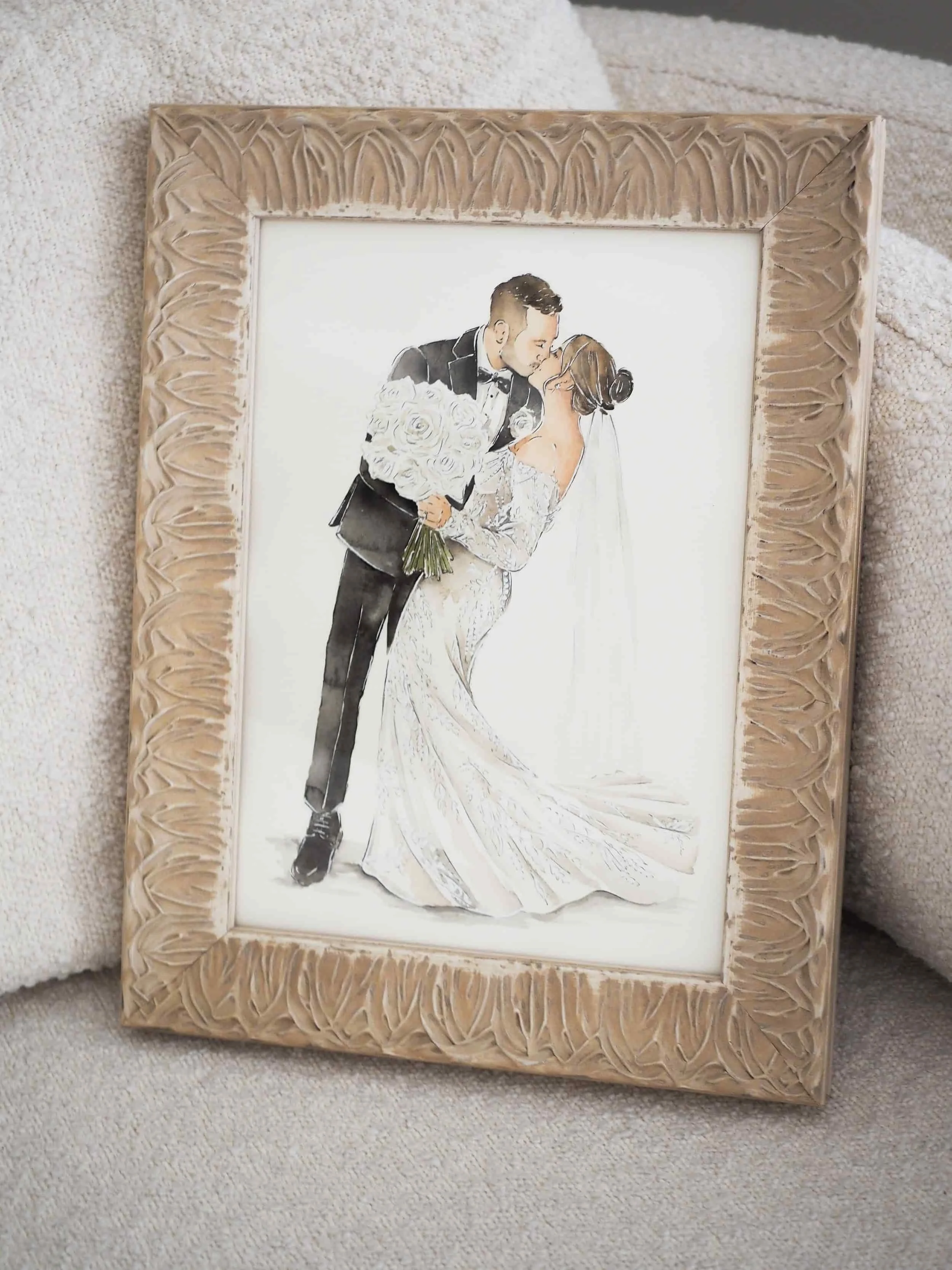 With over 1,000+ couples painted worldwide, Adrienne’s work is a favourite for those looking for a unique wedding or anniversary gift. A truly unique keepsake that tells the story of their wedding day.
